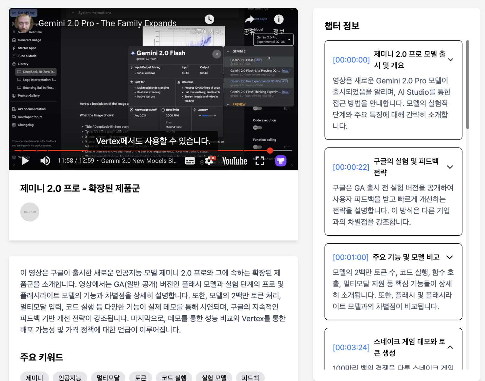 - 🚀 속도와 효율성: Gemini 2.0 프로가 이전 모델 대비 빠른 응답 속도와 긴 텍스트 생성을 구현하는 모습을 확인할 수 있습니다.