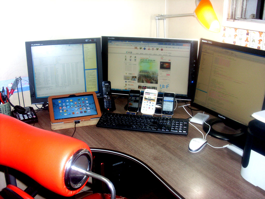 컴퓨터 한대에 3대의 모니터를 쓰고 있습니다.
