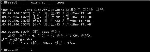 [그림 4] Ping 명령으로 DDNS 이용 공유기 확인