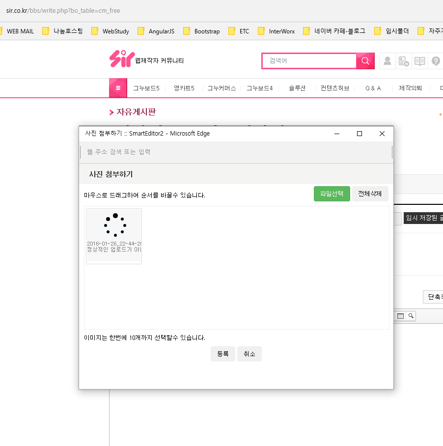 자게에 사진올리려니 업로드가 안되고 첨부한 이미지와 같이