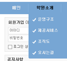 상단 메뉴는 제이쿼리 풀다운 메뉴구요.
