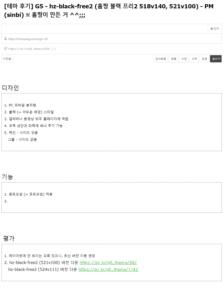 필요한 기능이 있는 테마나 스킨을 빨리빨리 찾아쓰잔 취지로 작성 중인데,