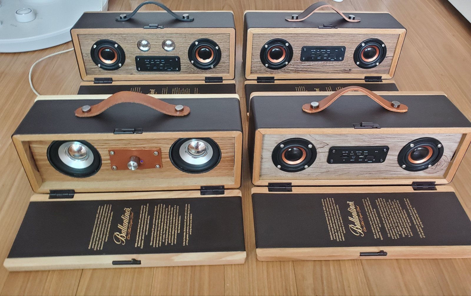 재료: 발렌타인 양주케이스(9900원), 스피커 엠프 모듈(10.000원), 가죽 자투리, 볼트캡, 접착데코타일(1000원), 택배비 등.