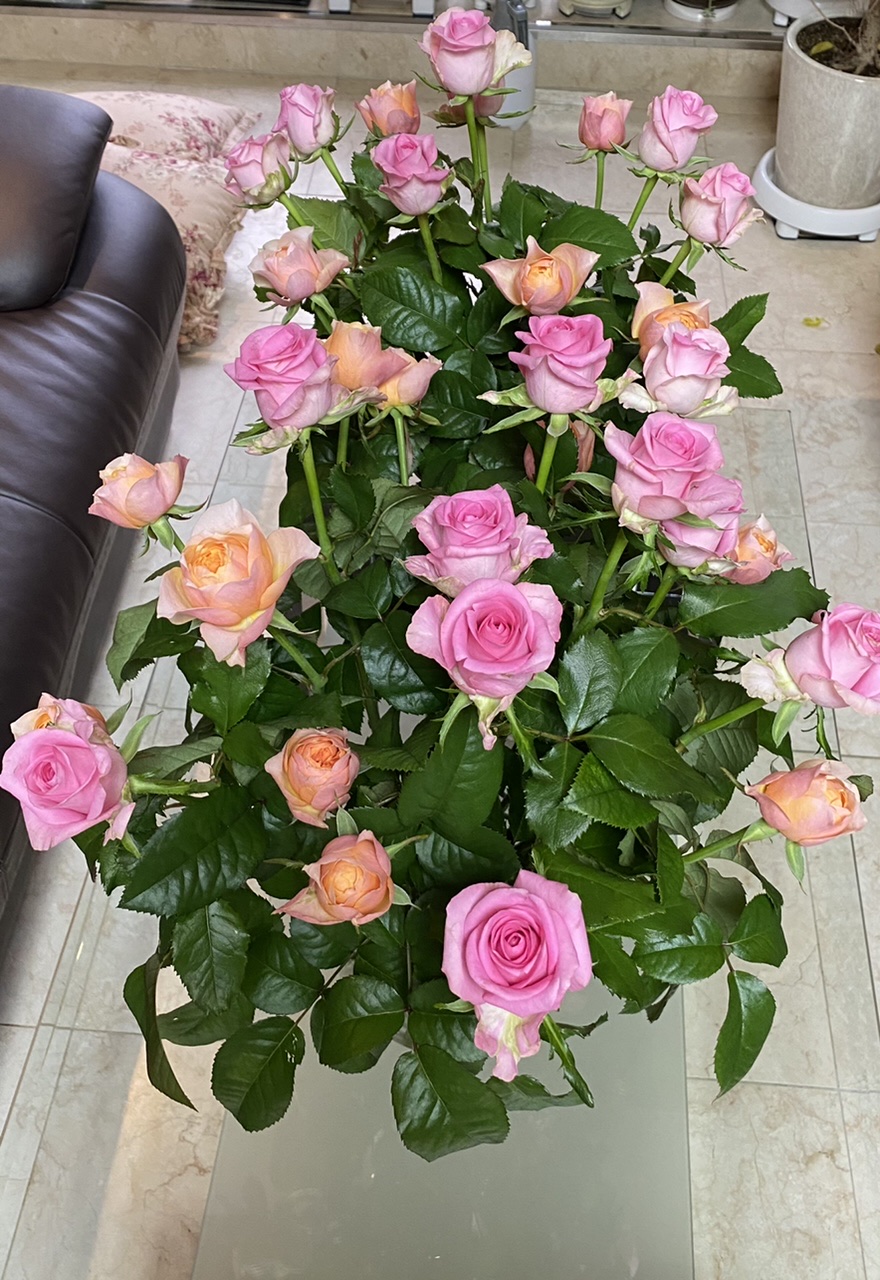 장미꽃 한 다발 선물 받았습니다.