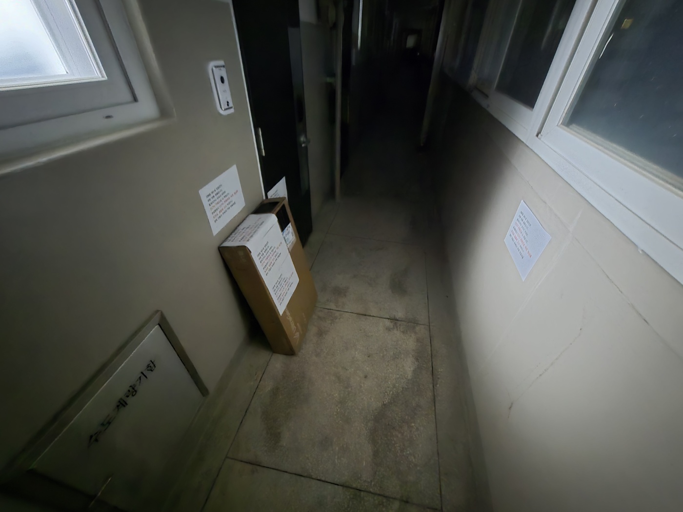 문 밖에서 집안을 보니... 도난당한 반품모니터가 있길래