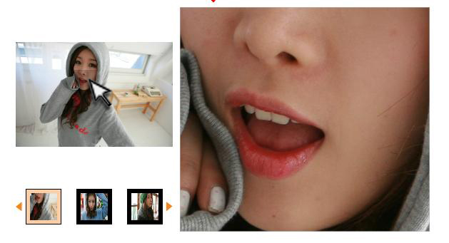 마우스 올리면 이동에 따라서 마우스 올라간 부위가 오른쪽에 크게 보이기만 하면 됩니다
