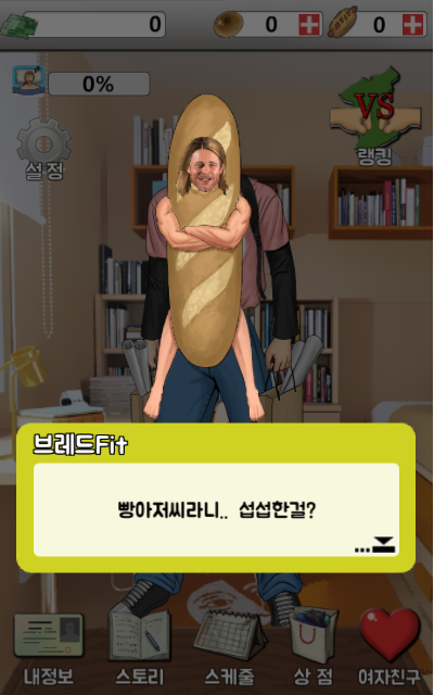 잠시 시간이 비어서 폰게임 하나 다운로드 받아 했는데, 시작하자마자 빵이 하나 튀어나와서 이래라 저래라...