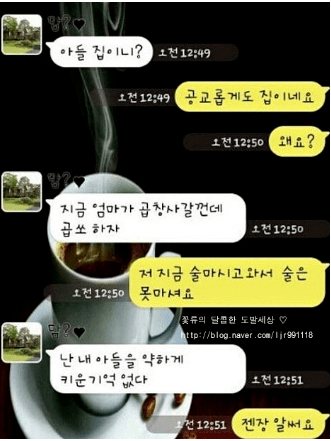 위 카톡은 남편이 아들폰으로 톡한건가..ㅋㅋ