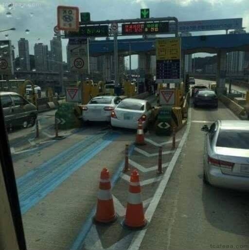 3차로 차량이 갑자기 하이패스 차로가 아님을 인지하고 돌진한것이 아닐까 싶은데..