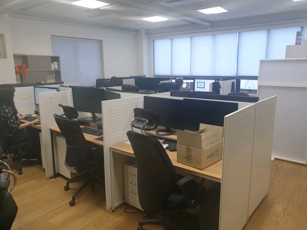 광고회사이며, 타지역 사무실 이전으로 10자리이상 여유공간이 있습니다.