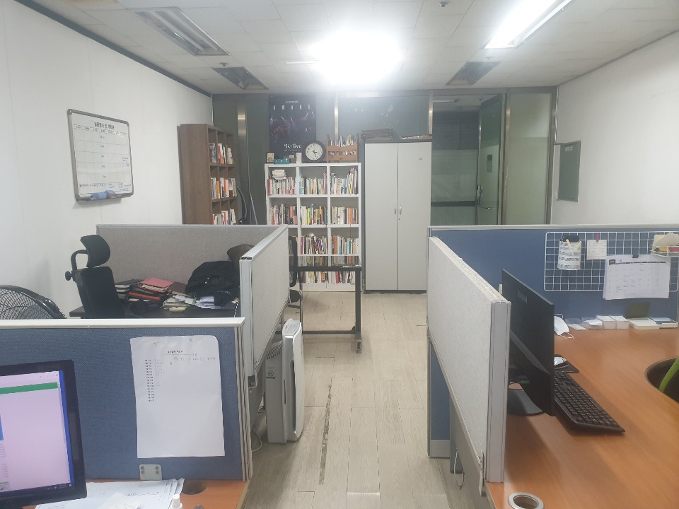 현재 2명 쓰고 있고 파티션 및 책상 따로 있습니다.