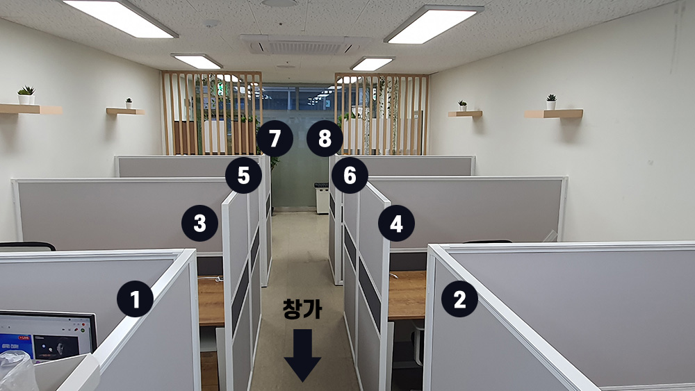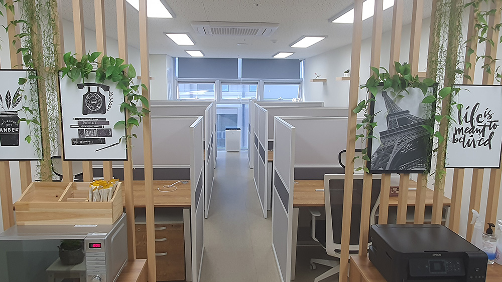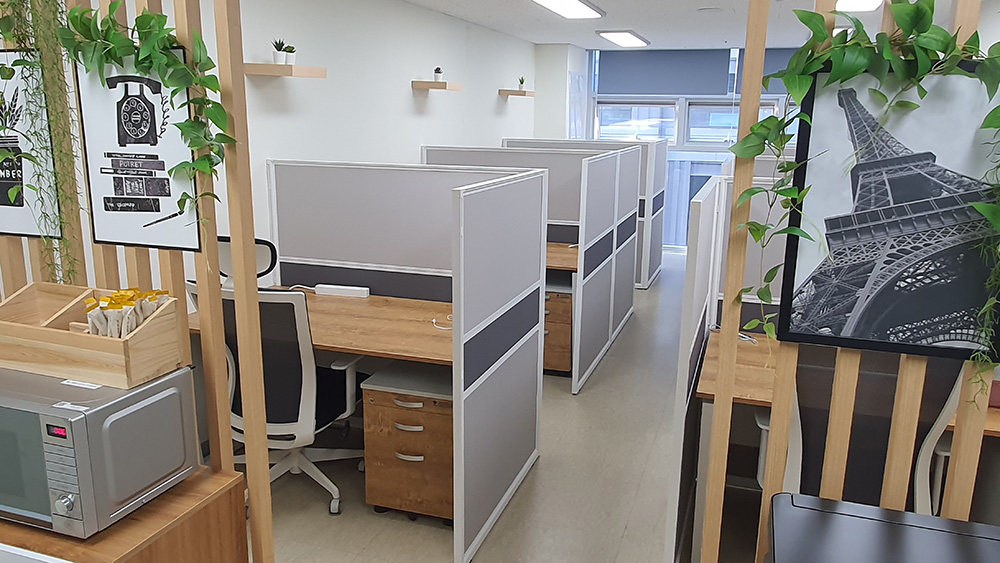 이용하시는 분들의 사생활 침해를 최소화한 개별 파티션의 전용공간 사무실입니다.