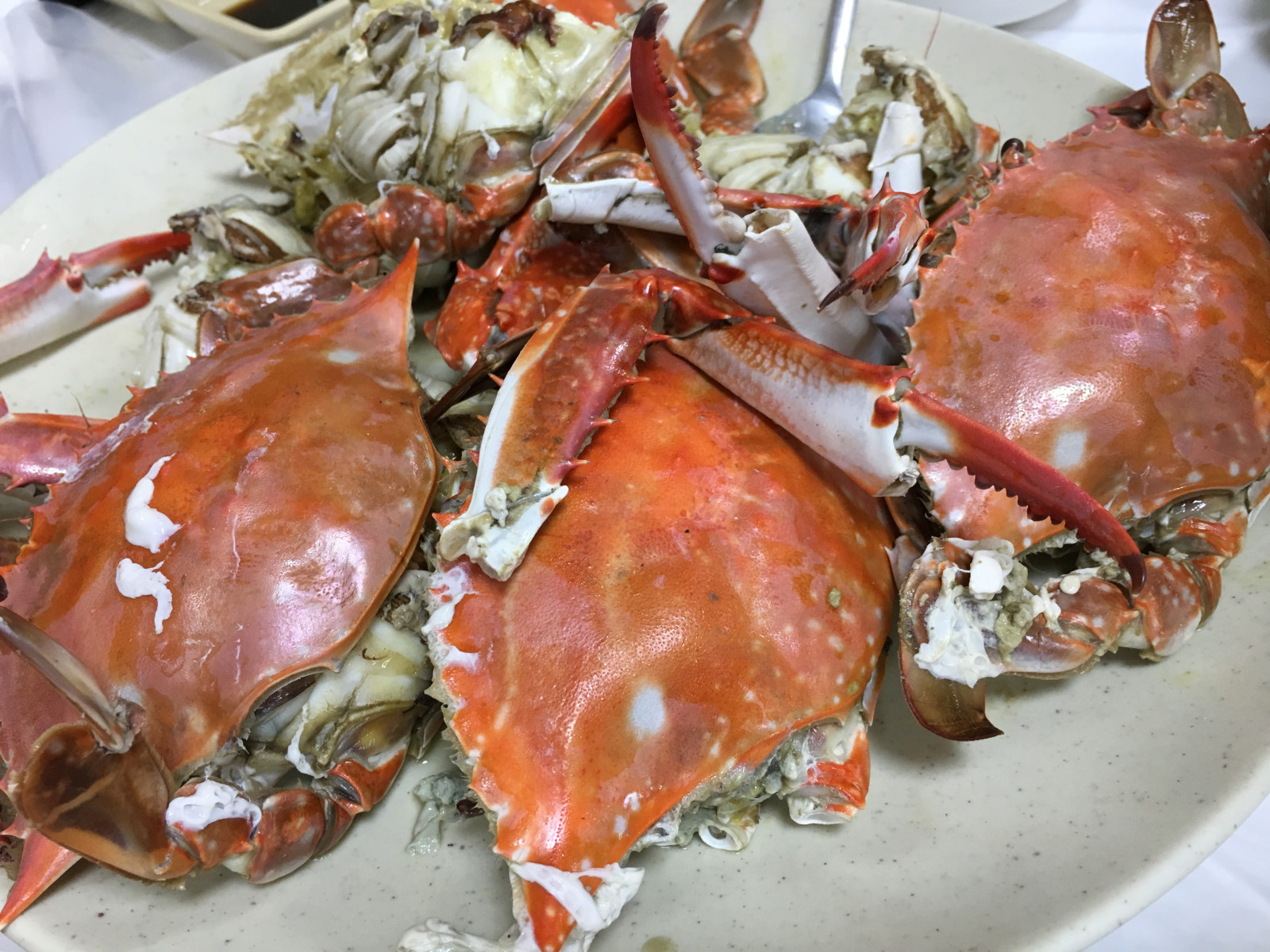 서천 특화시장에서 산 꽃게찜, 꽃게탕, 백합탕, 새우구이를 먹고