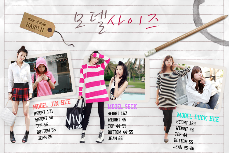 예전에 쇼핑몰 할때 쓰던 모델 사이즈입니다.