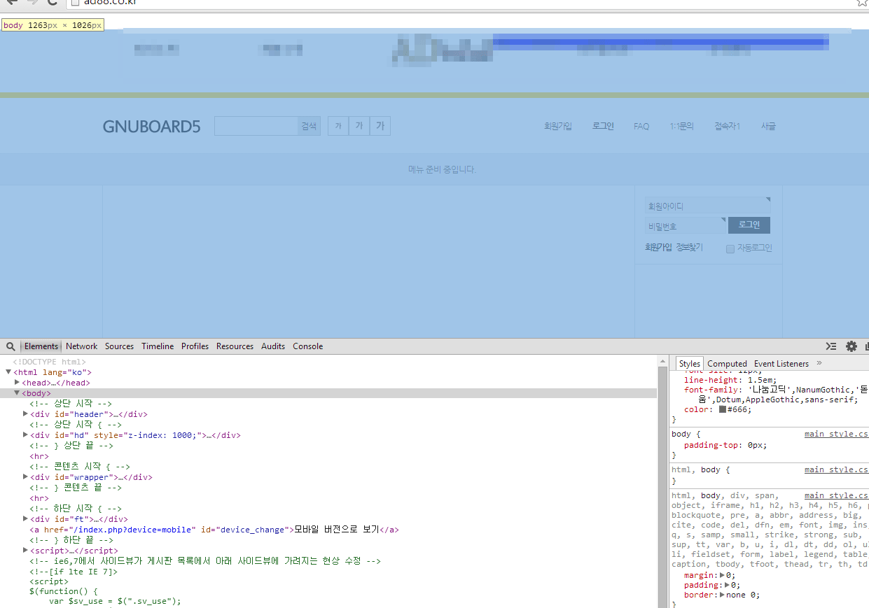 그누보드5로 만든 홈페이지중 하나가 body 위에 여백이 생기더군요.