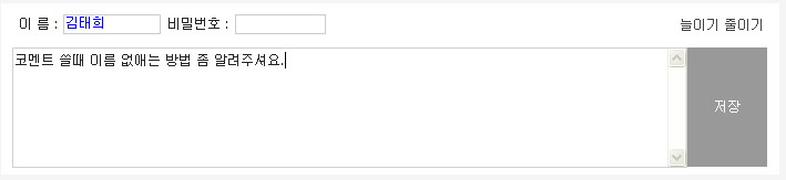 그리고 이상태에서 코멘트를 쓰고 저장을 하면 글읽기시 이름 대신 닉네임이 보이지만, 소스보기를 하면 중간에 이름(실명)이 노출됩니다.