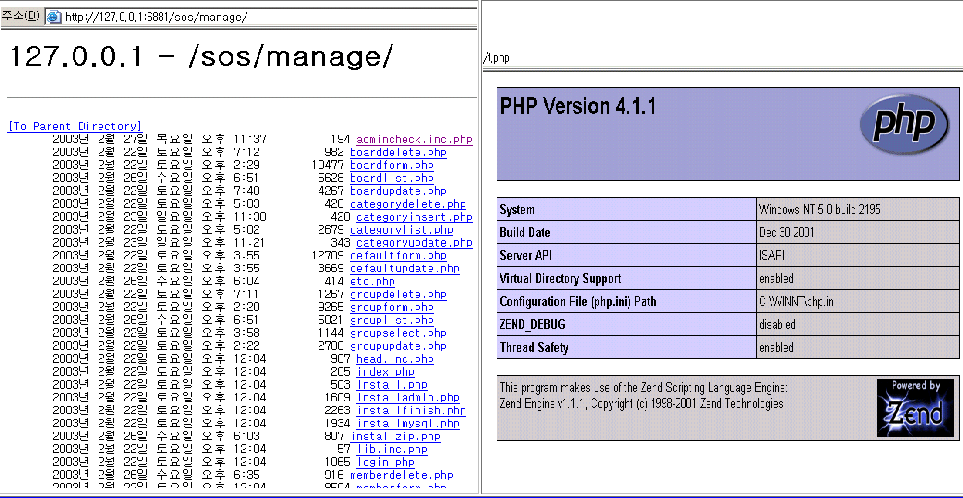 아파치가아닙니다 글에보시면 제로보드나 phpbbs보드가실행된다고 하지않앗나요