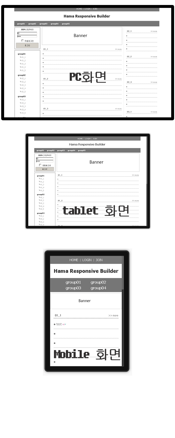하마빌더는 반응형 웹 템플릿 적용을 위한 기본적인 빌더 입니다
