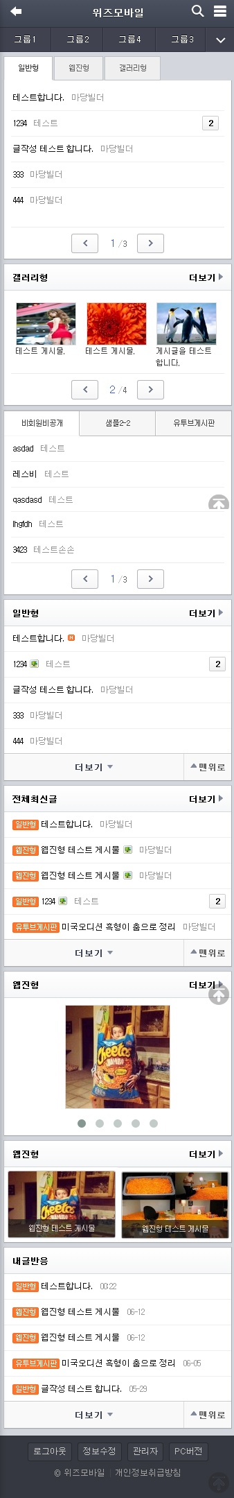 7. 모바일 관리기능 : 게시판 노출설정기능, 모바일전용 스킨 설정기능.
