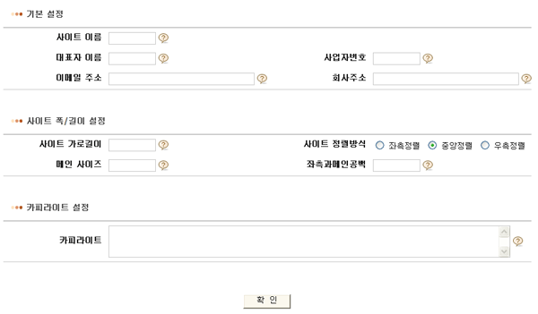 ㆍ 카피라이트 설정 (대표자명, 운영자명, 회사주소, 이메일주소)