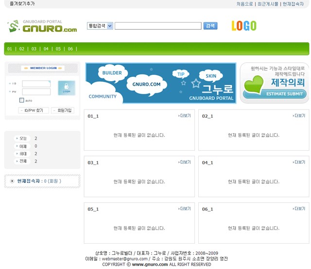 테스트 사이트는 http://no6.nayana.kr/~totaltest/gnuro_builder 로 가셔서 test2/1234 로 관리자 내부보기와, 마이페이지 테스트를 해보실수 있습니다.