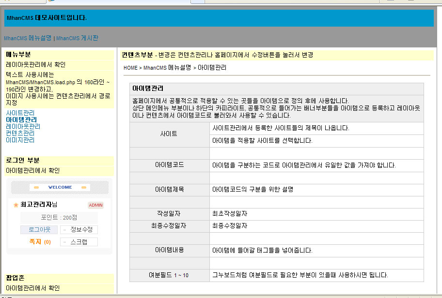 05. MhanCMS 메뉴 설명