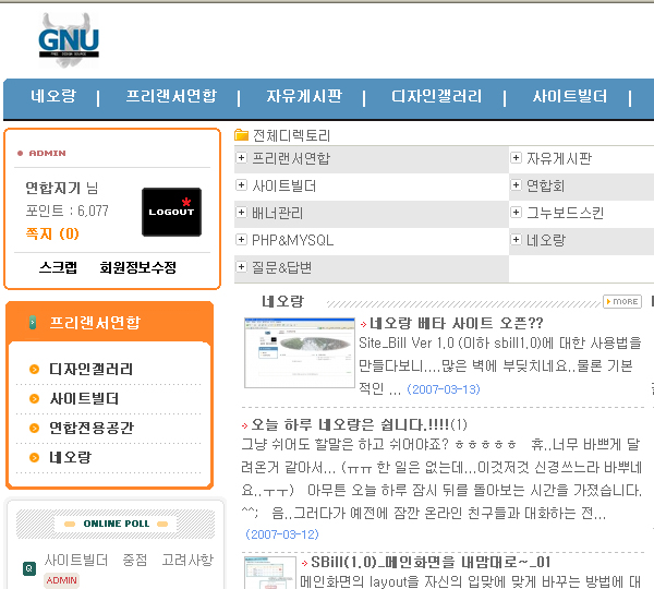 따라서 처음사용하시는분은 그누보드에서 공개한 정식 프로그램을 우선 사용하시는것이 좋다고 생각됩니다.