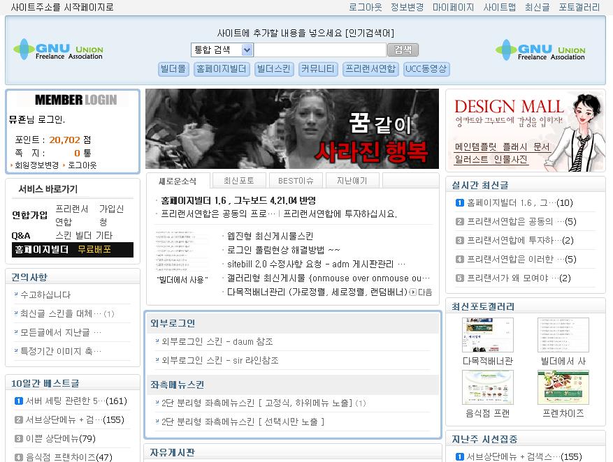 그누보드 4.21.04 및 우편번호 업데이트를 기준으로 홈페이지빌더를 선보일가 합니다.