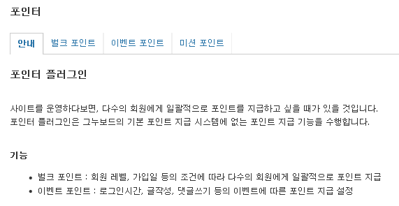 사이트를 운영하다보면, 다수의 회원에게 일괄적으로 포인트를 지급하고 싶을 때가 있을 것입니다. 포인터 플러그인은 그누보드의 기본 포인트 지급 시스템에 없는 포인트 지급 기능을 수행합니다.