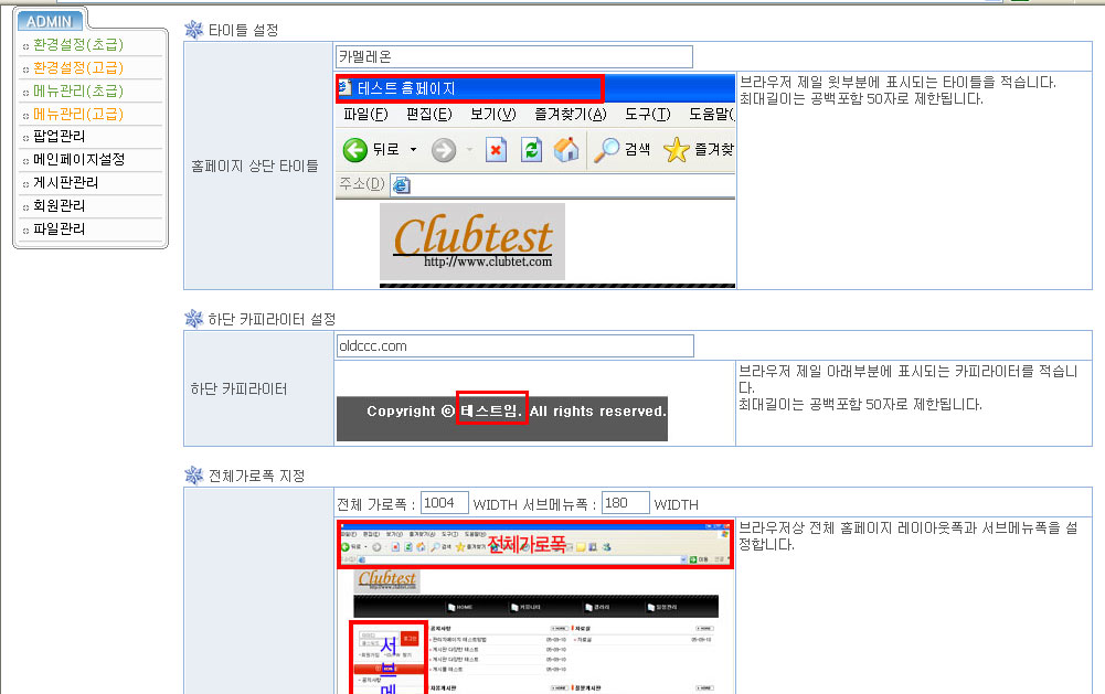 지금 제가 어제와 오늘 이틀동안 테스트홈페이지에서 계속 보면서 여러가지적용을 해보고 있는데요