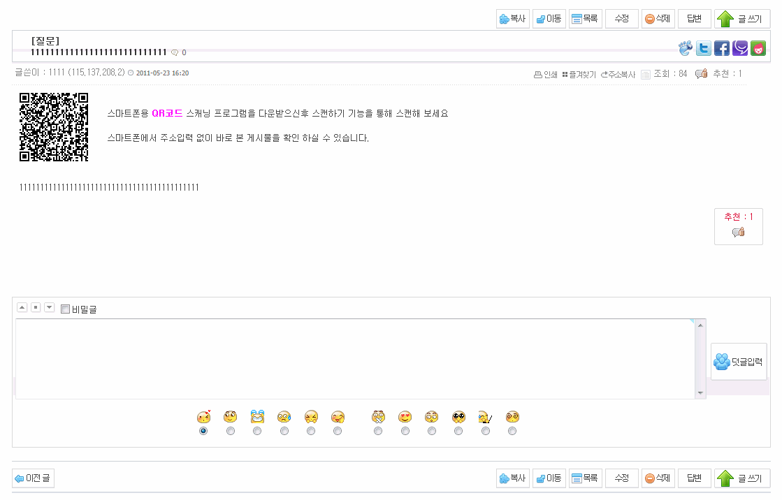 카테고리 상단위치+검색폼 상단위치+ QR코드+sns보내기 삽입한 짬뽕 게시판 3번째 입니다. ^^
