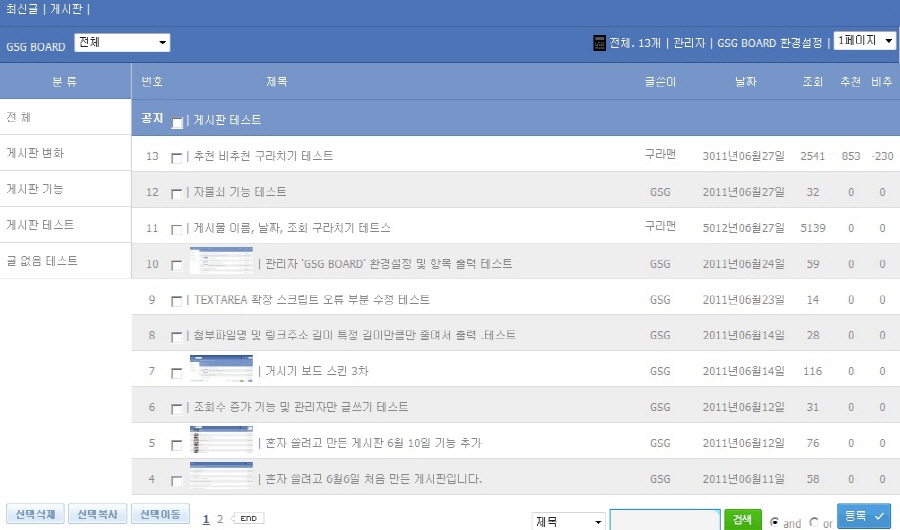 ㄷ. 글 감추기 기능 : 글쓰기에서 게시물 숨김 선택시 리스트에서 게시물 감춤. 관리자만 볼 수 있음 (환경설정에서 설정)