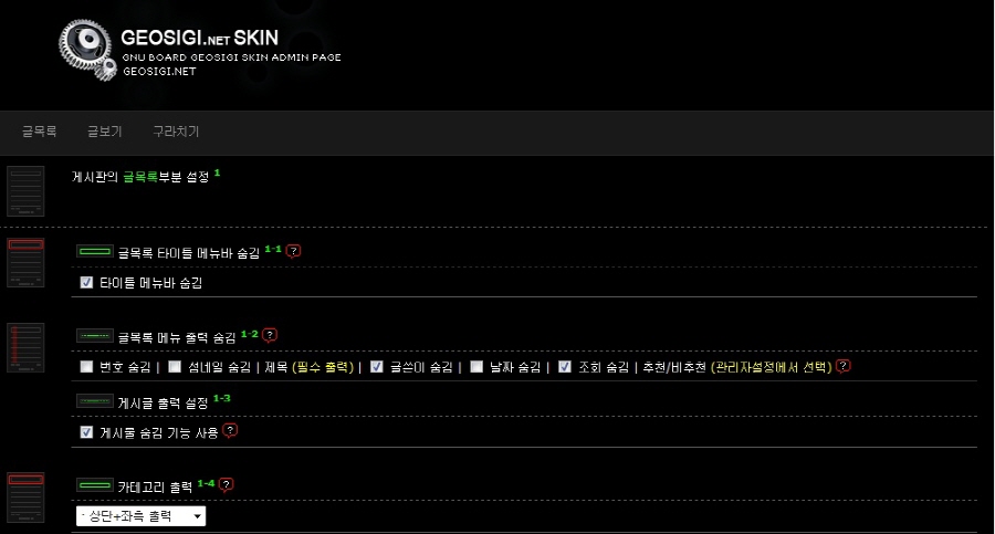 거시기 스킨 6차 : 카테고리 출력 설정 및 글 감추기