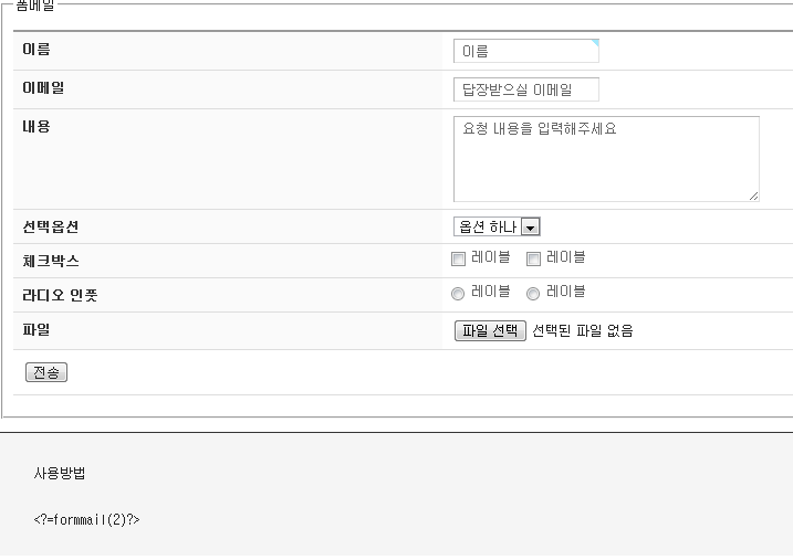 폼메일(html) 관리기 Version 0.0.1 (Nov 15 2011)