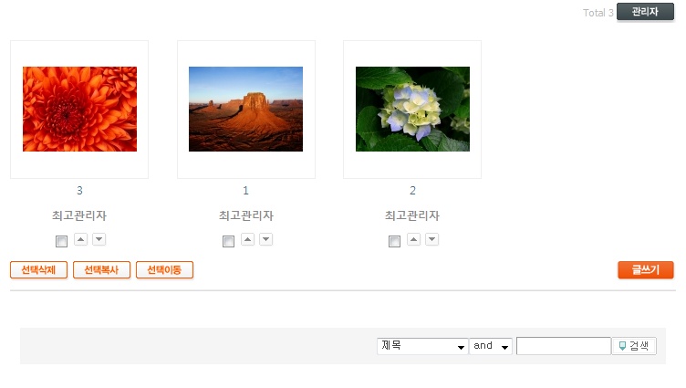 관리자로 로그인시 화살표가 자동 생성되어 이미지 위치를 조정할 수 있습니다.