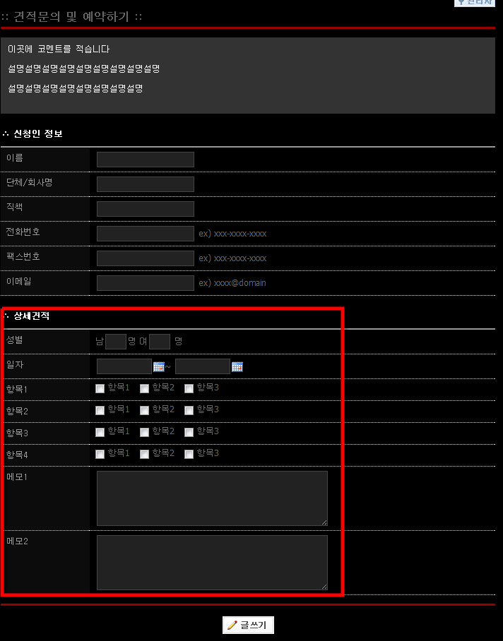 예약,신청폼입니다