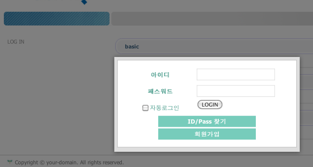 Avgrund Modal 이라는 jQuery 플러그인( http://labs.voronianski.com/jquery.avgrund.js/ ) 을 아웃로그인 스킨에 적용해보았습니다.