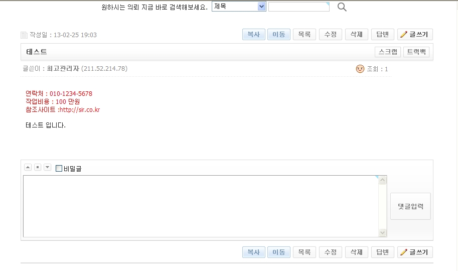 작업의뢰 게시판 과 목록 리스트 위의 의뢰검색스킨