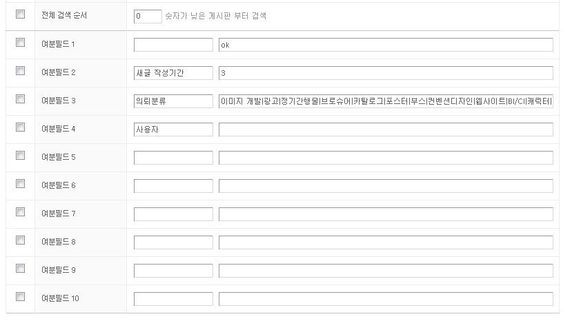 여분필드 1은 추가필드 확인용이니 건들지 마세요~