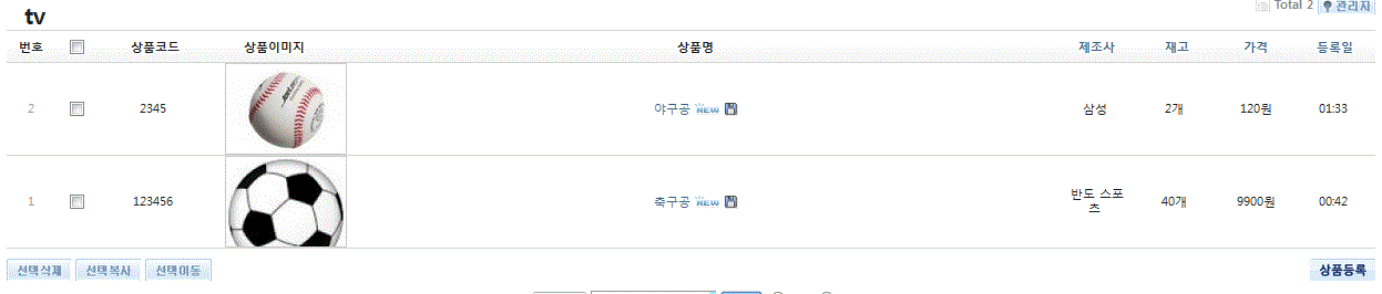 1. 상품 게시판에 상품을 사진과 함께 등록합니다(관리자)