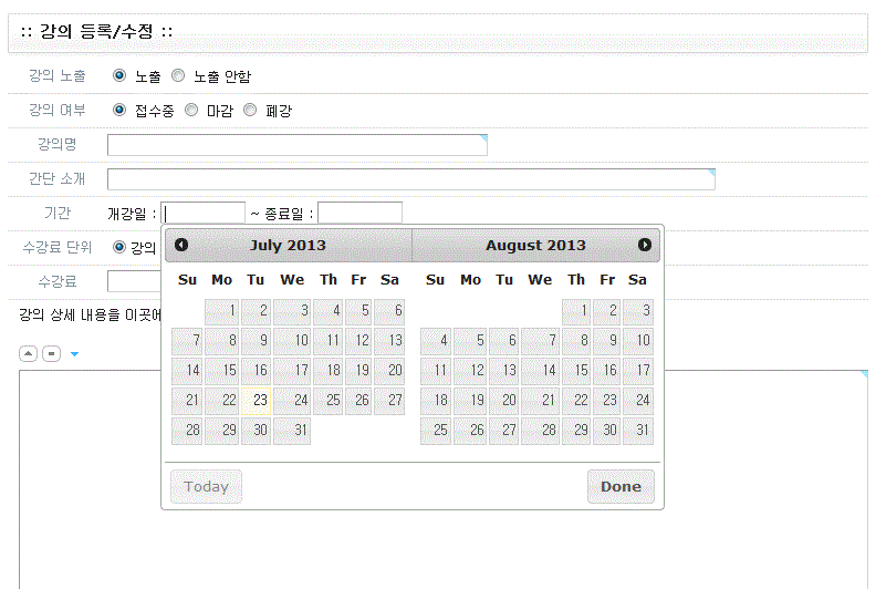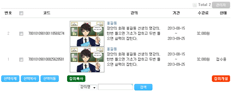 - 동일 강좌 게시판 내 복사 가능(기존 강좌 안내 재활용)