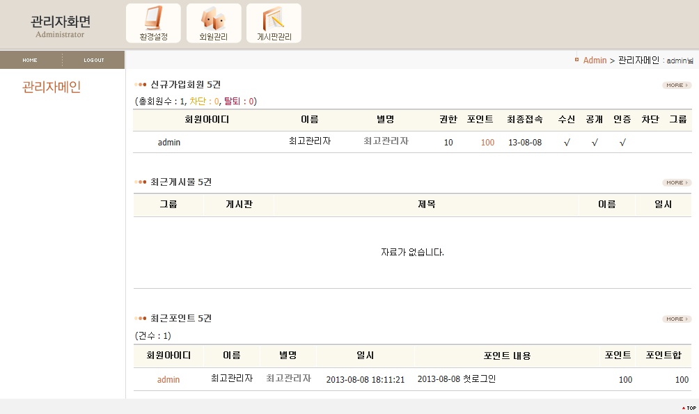 부운영자들에게 부관리자모드를 따로 마련해 줄수 있게 하였습니다.