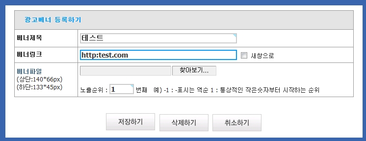 기능 : 1. 메인또는 일부페이지에서 다이렉트 광고베너수정및 신규등록기능