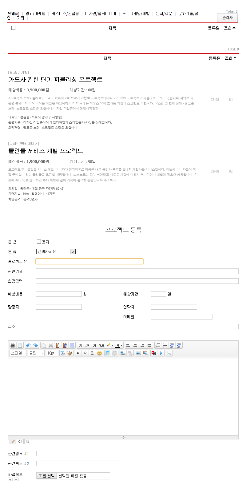 프로젝트 공지나 의뢰등록 할수 있는 게시판입니다.