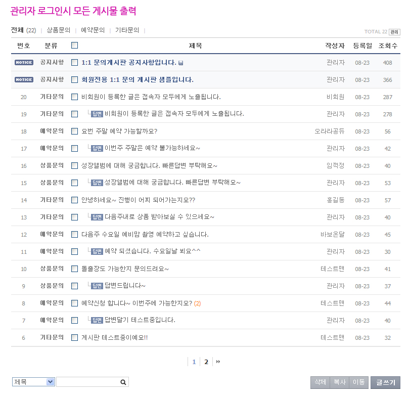 *관리자 접속시에는 등록된 모든 게시물이 출력됩니다.