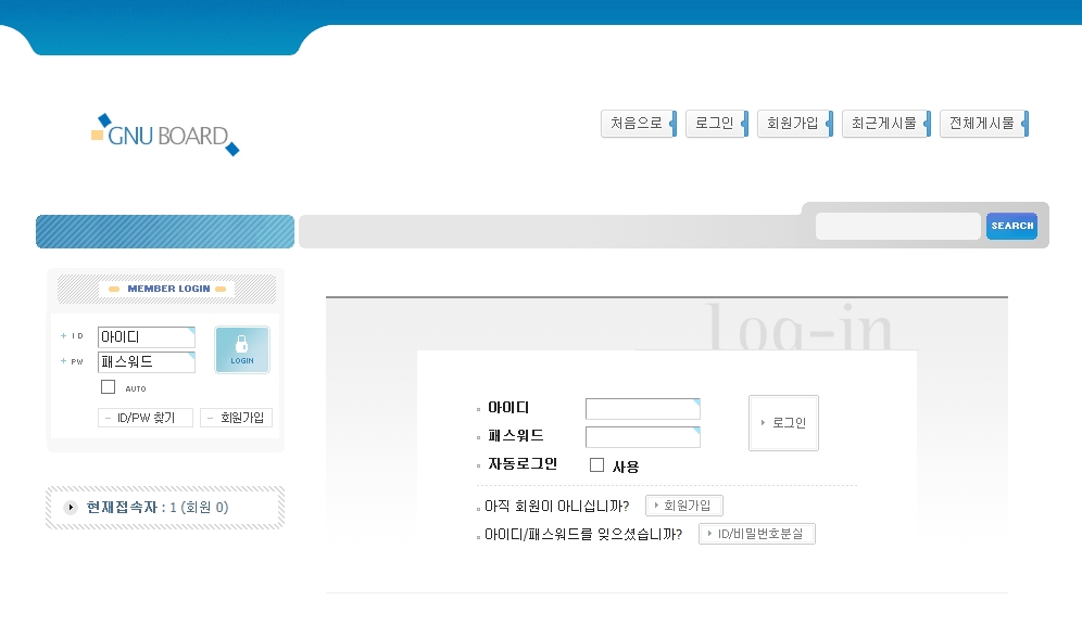 1. 그누보드4 기본으로 제공되는 파일을 사용하여 샘플을 제작하였습니다.