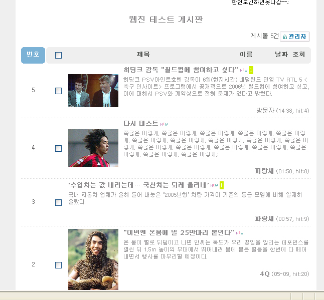 멋집니다. ^.^ 제 사이트의 게시판을 위의 것으로 바꿨습니다. ^.^ 하지만, 아직 수정 부분에서 문제가 있는 것이 있군요. 같이 테스트 해가면서 잡아 가는 것이 어떨까요?