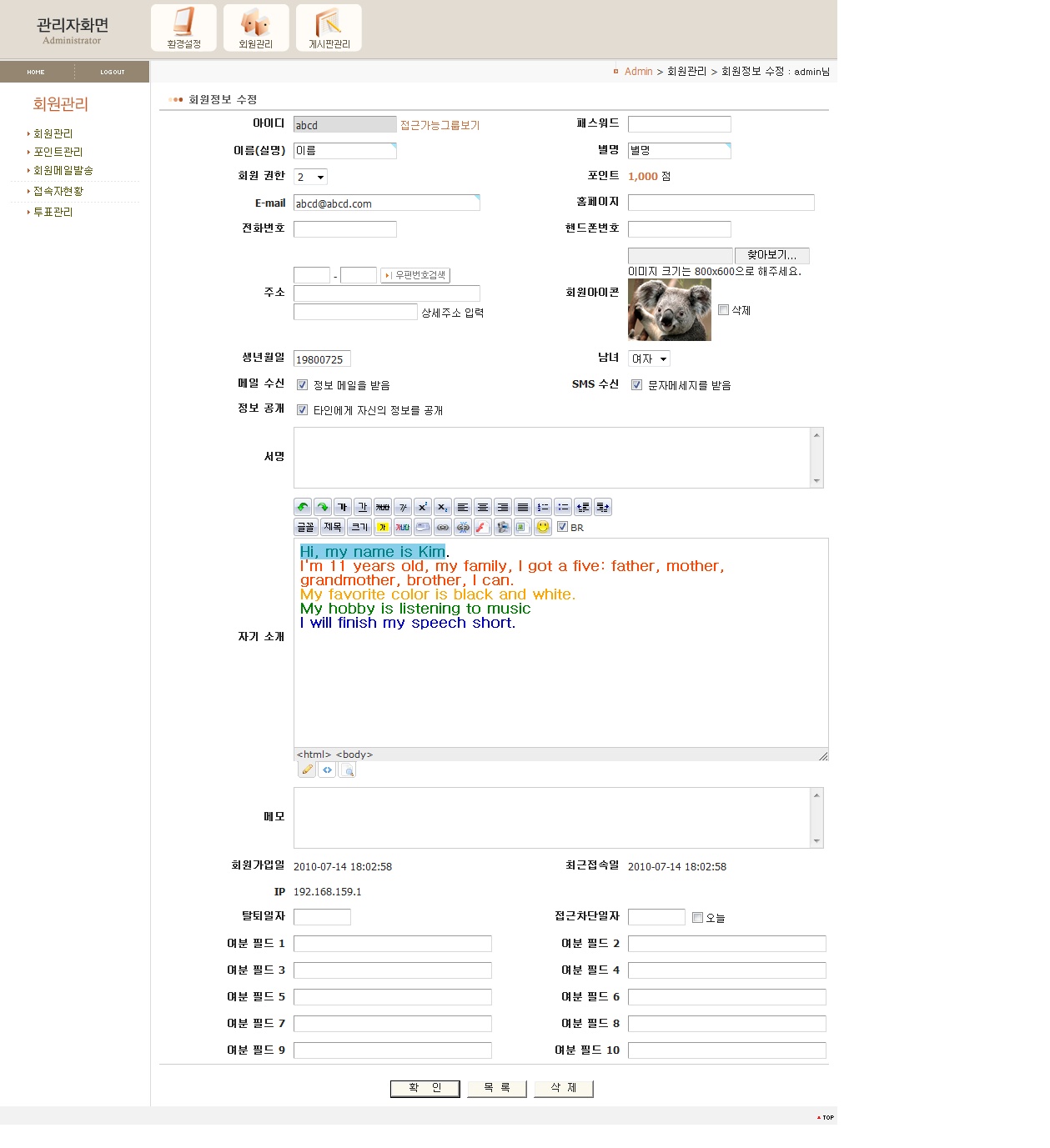 자기소개 부분을 에디터로 작성할 수 있도록 했구요.