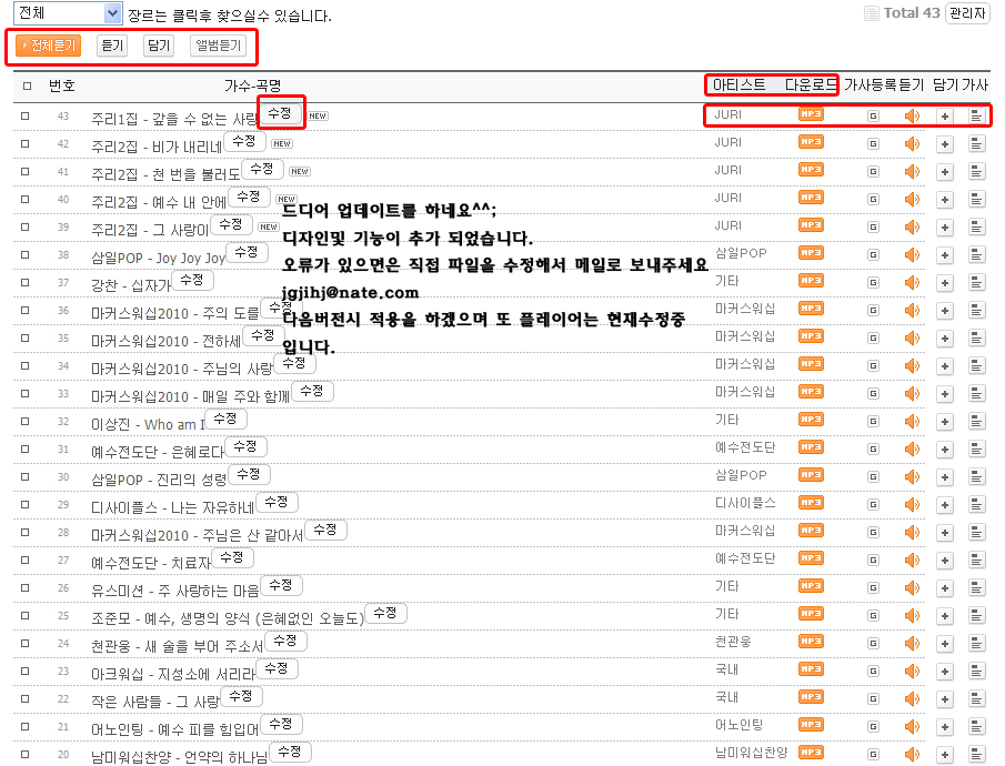 mp3는 자신이 올렸을때 회원들은 전부 다운이 가능하게 추가 되었습니다. [비회원 절대 안보임]