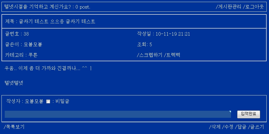 텔넷 느낌나도록 게시판 스킨 만들어 보는 중입니다